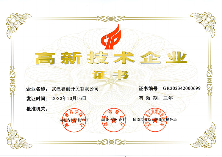 武汉睿创开关有限公司    联系地址:武汉市蔡甸区花园湾一街百姓驰腾工业园1栋5号